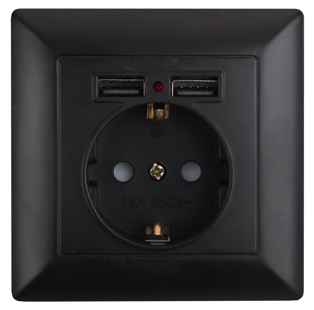 Розетка с USB со шторкой серии Intro Solo скрытой установки цвет антрацит 4-410-05. Номинальные характеристики 16А 250В/2,1А-5В . Розетка выполнена из негорючего термопласта, укомплектована одноместной рамкой, оснащена винтовыми клеммами. Клеммы с двумя отверстиями позволяют соединять соседние розетки шлейфом. Установка в подрозетник производится как на монтажные лапки, так и на винты.
