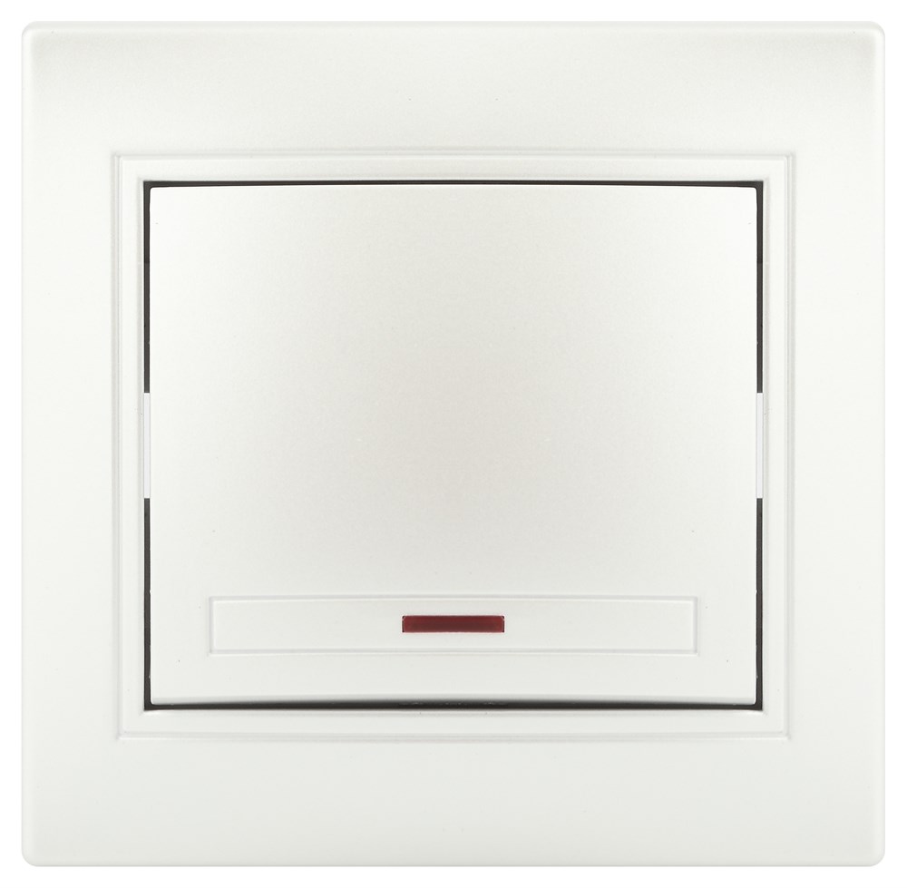 Intro Выключатель Plano 1-102-06 одноклавишный с подсветкой, 10А-250В, IP20, СУ, перламутр Б0053736