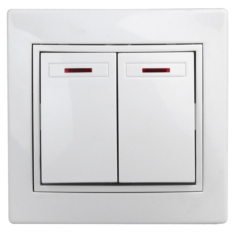 Intro Выключатель Plano 1-105-01 двухклавишный с подсветкой, 10А-250В, IP20, СУ, Plano, белый Б0053773