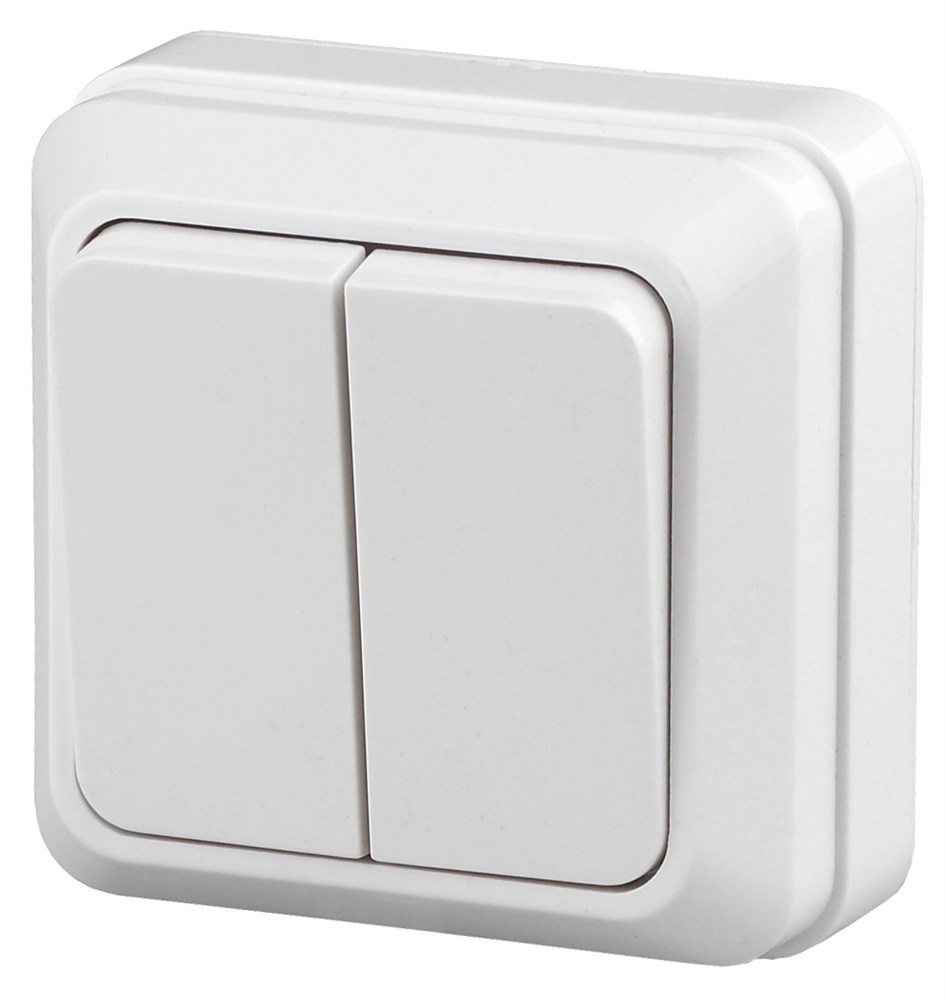 Выключатель Intro Quadro 2-104-01 двухклавишный 10А-250В, IP20, ОУ, белый