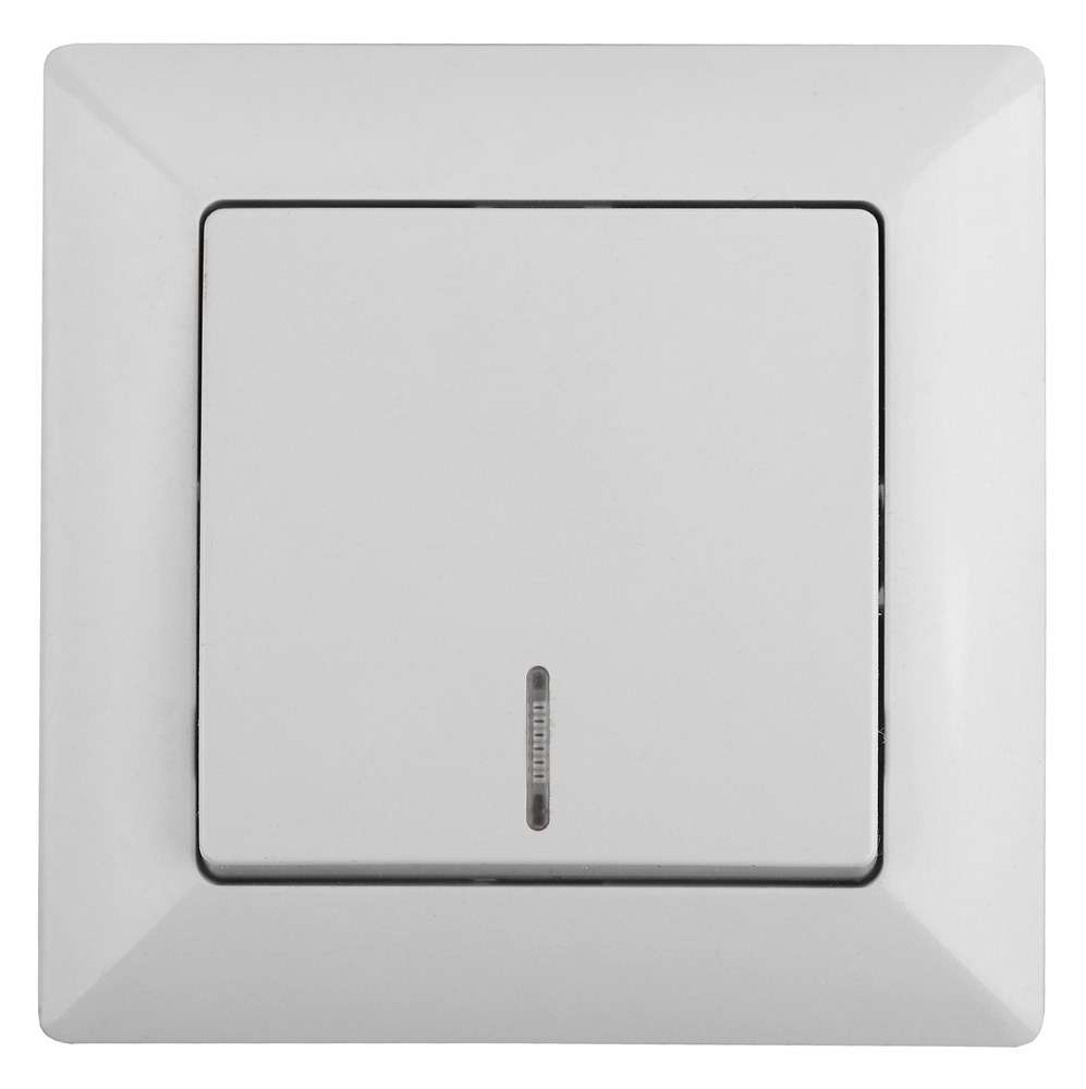 Intro Выключатель Solo 4-102-01 одноклавишный с подсветкой, 10А-250В, IP20, СУ, белый Б0053557