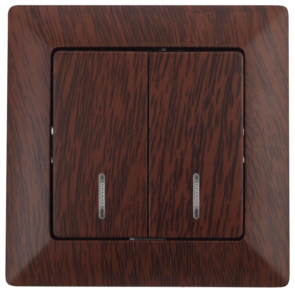 Выключатель Intro Solo 4-105-10 двухклавишный с подсветкой, 10А-250В, IP20, СУ, венге