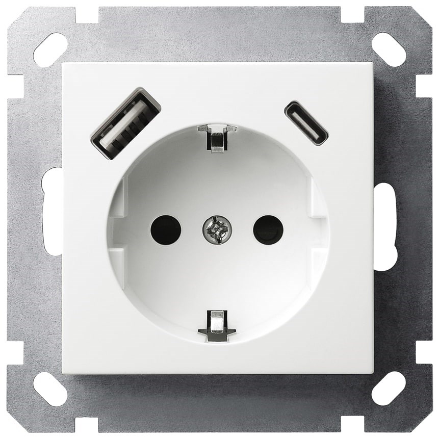 Jasmart G Белый глянцевый Розетка с/з со шторками 16A c USB A+C 25W G5501USB-25W