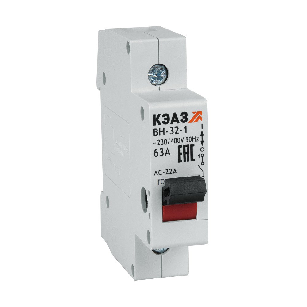 Модульный 1 полюсный выключатель нагрузки переменного тока с предельной коммутационной способностью при переменном токе на номинальный ток 63 А.