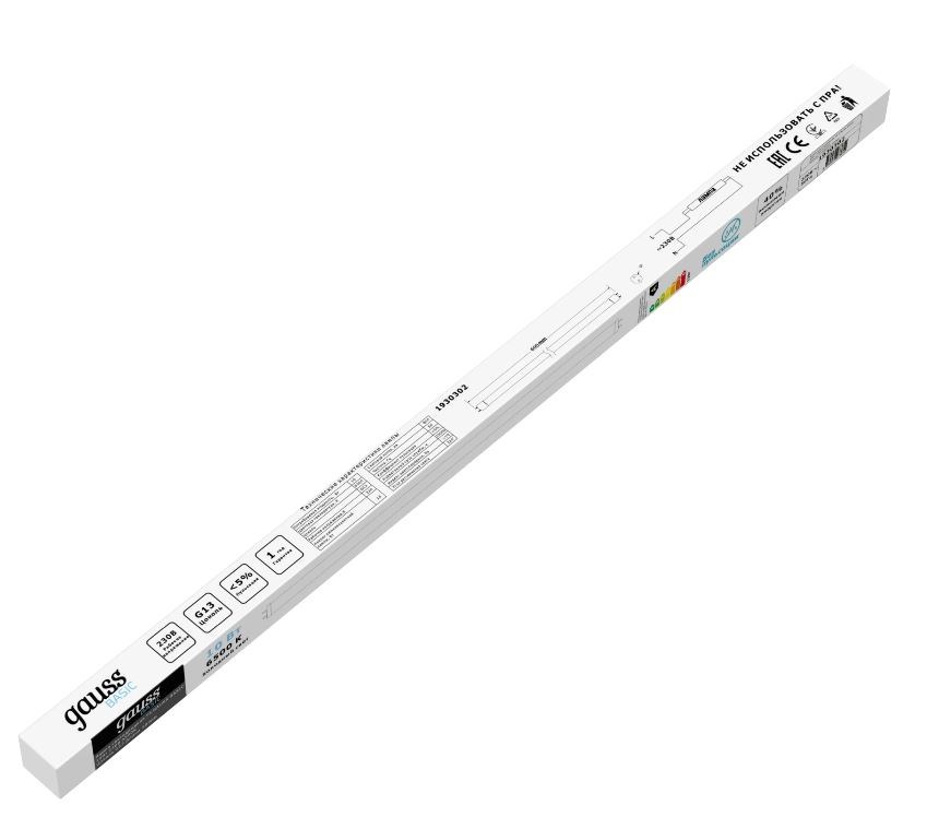 Линейные лампы Gauss T8 с цоколем G13 - выгодная замена стандартных люминесцентных ламп. Замена безопасна и не требует менять светильники – длина ламп светодиодных соответствует установленным стандартам Светят ярче и экономят в 7 раз больше электроэнергии! Структура лампы позволяет получить равномерный, мягкий световой поток, который светит в одном направлении, что позволяет добиться максимальной эффективности в отличии от люминесцентных аналогов. В ассортименте представлены вариации и с поворотным цоколем - то есть они подойдут для светильников и с горизонтальной, и с вертикальной ориентацией цоколя. Наличие поворотного цоколя не только облегчает процедуру монтажа LED лампы, но и позволяет направлять световой поток в том направлении, в котором это необходимо. Лампы с матовым стеклом обладают двумя температурами цвета - 4000 K и 6500К