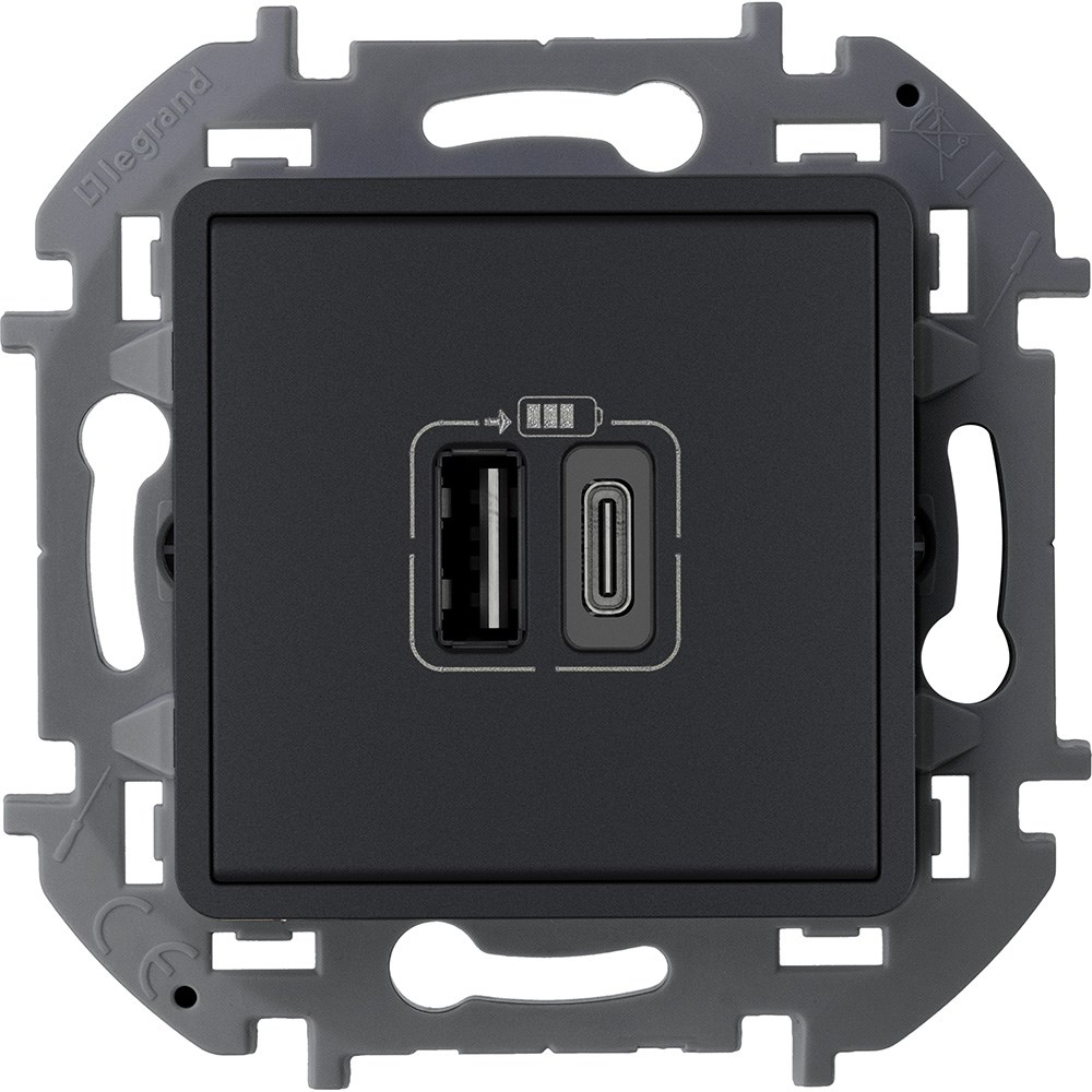 Legrand Inspiria антрацит зарядное устройство с двумя USB-разьемами A-C 240В/5В 3000мА 673763