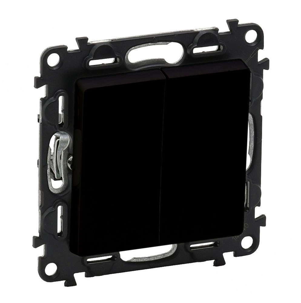 Legrand Valena Life Black переключатель двухклавишный 10А 250В с лицевой панелью. Безвинтовые зажимы, антрацит. 756308