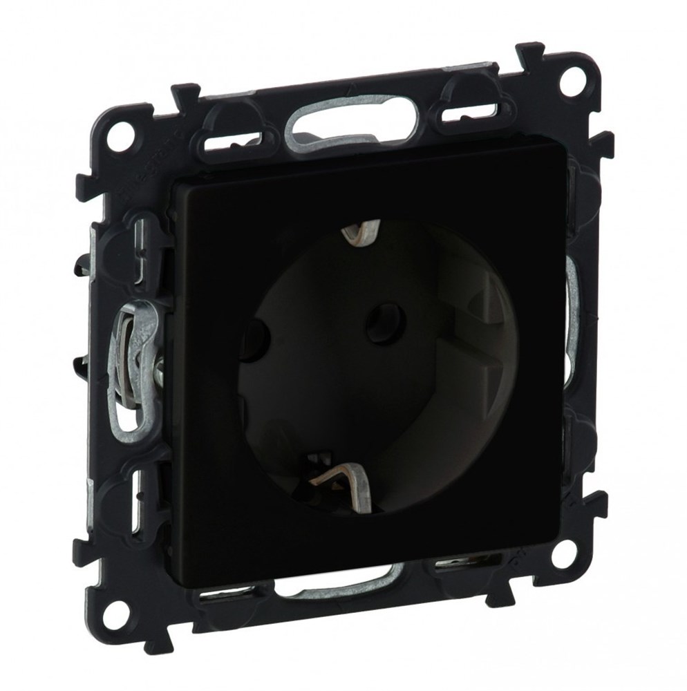 Legrand Valena Life Black Силовая розетка 2К+З 16А 250В с защитными шторками. Безвинтовые зажимы. С лицевой панелью, антрацит. 756320
