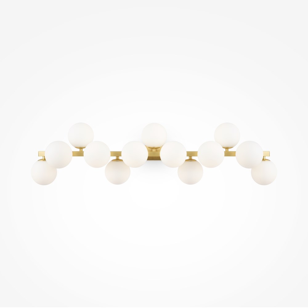 Масштабные скульптурные композиции, образованные многочисленными шарами из выдувного стекла, формируют неповторимый облик светильников серии. На полированных металлических ветвях установлены тонированные плафоны, которые мягко рассеивают и приглушают свет ламп. Модели серии представлены в трех цветах: золото, хром и латунь. Высота подвесных светильников регулируется длиной троса. Серия представлена потолочными, подвесными светильниками, и бра.
