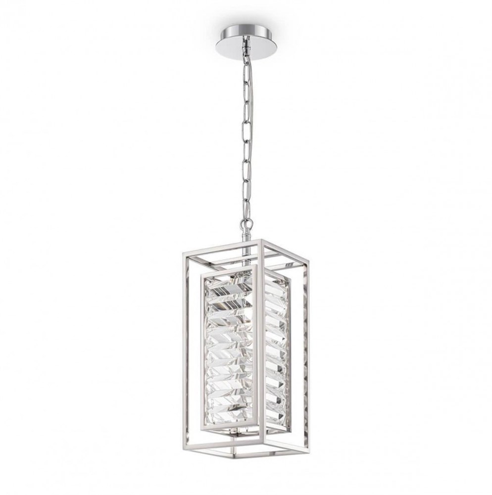 Изысканные искрящиеся кристаллы с трапециевидной огранкой преломляют потоки света, наполняя пространство радужными бликами. Заключенные одна в другой рамы из полированного металла создают ощущение иллюзорности конструкции. Модели серии представлены в двух цветах: хром и золото. Высоту подвесных светильников возможно изменить, регулируя длину цепи.