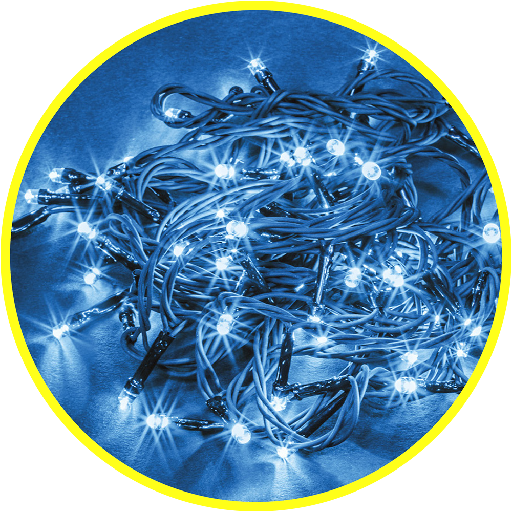 тип гирлянды - нить; цвет свечения - синий; 8 режимов свечения; общая длина - 9,5 м; длина провода до первого светодиода - 1,5 м; количество светодиодов - 100 шт; расстояние между светодиодами - 8 см; тип провода - черный каучук; степень защиты - IP44; температура эксплуатации от -40 до +40°С; срок службы - 50000 часов; гарантия - 12 месяцев.