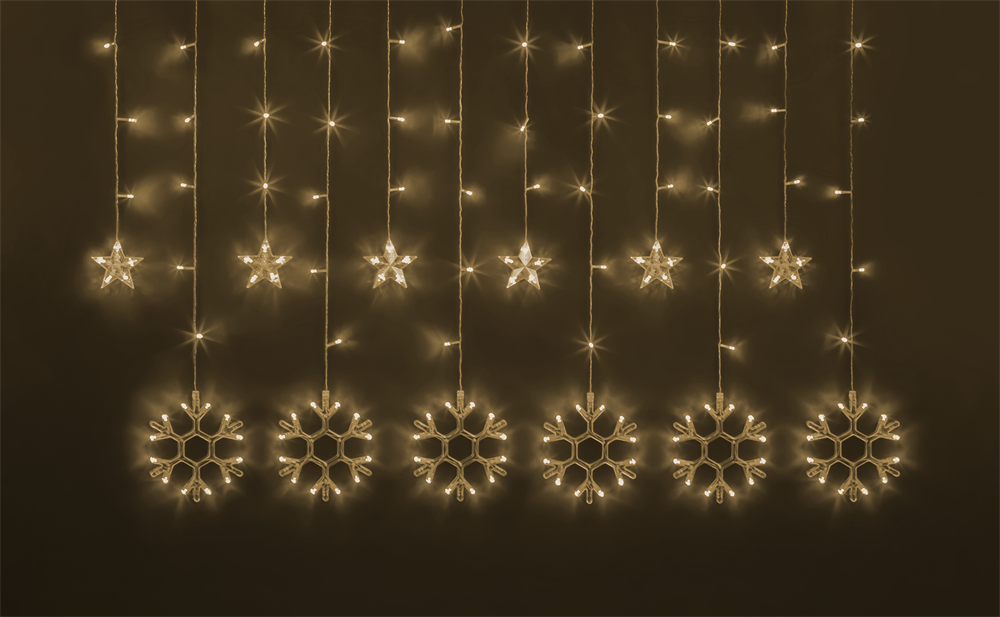Navigator Гирлянда 95 005 NGF-D032-01 (бахрома звезды и снежинки WW 2.5*1м IP20) 95005
