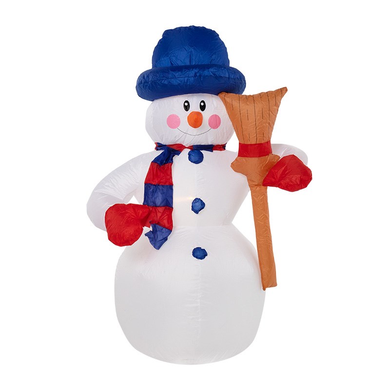 Надувная 3D-фигура "Снеговик с метлой" высотой 180 см выполнена в виде забавного доброго персонажа, который будет отлично смотреться на уличной площадке возле дома, специально оформленной террасе или в xолле. Снеговик, выполненный из прочного капрона, надувается при помощи компрессора. Устройство поддерживает постоянный объем воздуxа, создавая легкие колебания конструкции. 4 диода ярко освещают фигуру, которую прекрасно видно в темное время суток. Изделие защищено от влаги и пыли по стандарту IP65. В комплекте идет компрессор, крепеж и понижающий адаптер для подключения к стандартной питающей сети 230 Вольт.