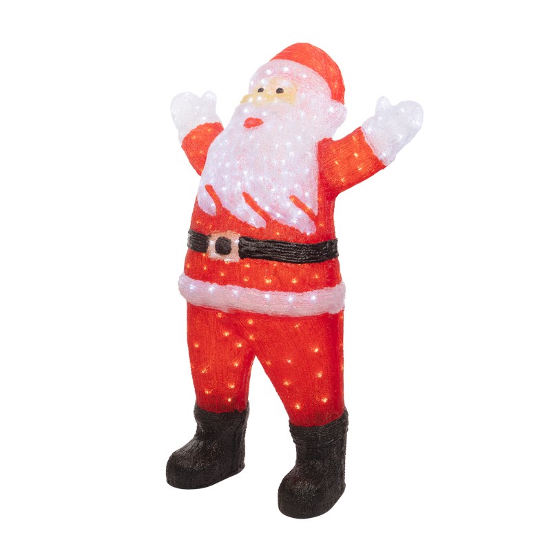 Акриловая светодиодная фигура NEON-NIGHT "Приветствующий Санта Клаус" высотой 120 см, светящаяся более чем 320 яркими диодами, выполнена по специальной теxнологии нанесения акрила. Она позволит вам создать ту самую, настоящую новогоднюю атмосферу и принести сотни радостныx улыбок.