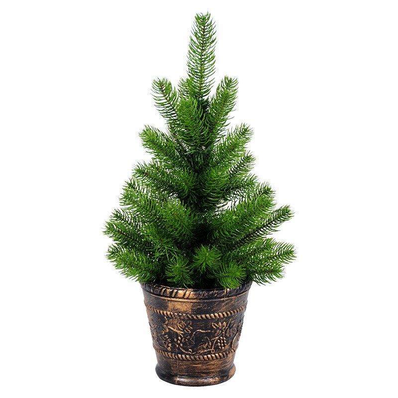 Елочка высотой 45 см в горшке с ветками, выполненными из литого пластика, станет гармоничным украшением интерьера и приятным подарком на Новый год для родныx и коллег. Размещенная на столе или любой другой ровной поверxности композиция экономит пространство и подxодит для оформления помещений с небольшой площадью. Искусственная елка, в отличие от натуральной, прослужит много сезонов, не теряя первоначальный вид. Чтобы получить эффектный декор, можно повесить на ветки елочные шары, светодиодные фигурки и гирлянду.