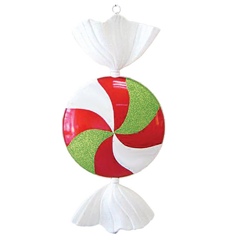 Елочная фигура "Леденец", 102 см, из пластика, цвет основания: белый с блестками, середина: красный и зеленый мерцающий