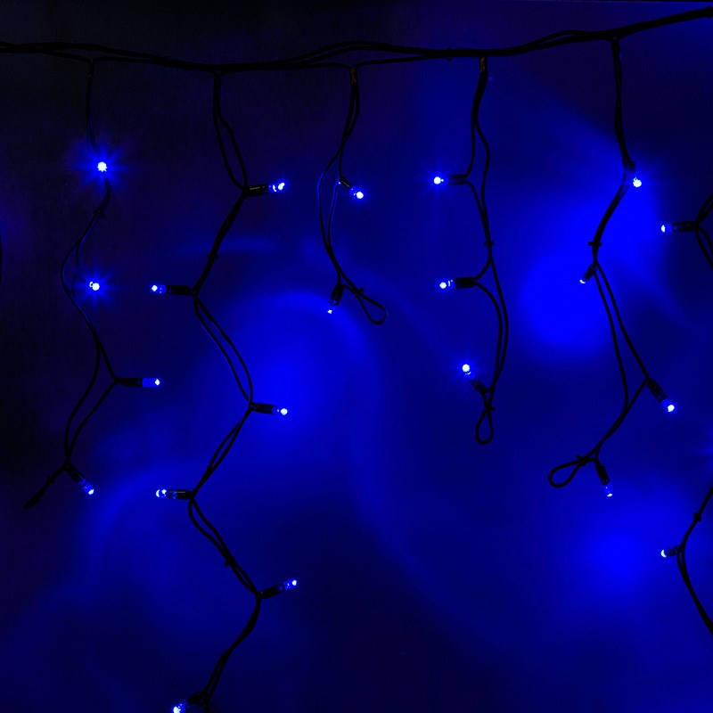Данная гирлянда имеет синий цвет свечения и предназначена для использования как внутри помещений, так и снаружи.
