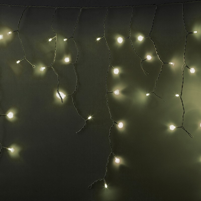 Гирлянда имитирует сосульки и может послужить оригинальным решением при украшении карнизов, арок, фасадов зданий, витрин магазинов, а также стать эффектным элементом декора внутри помещений.