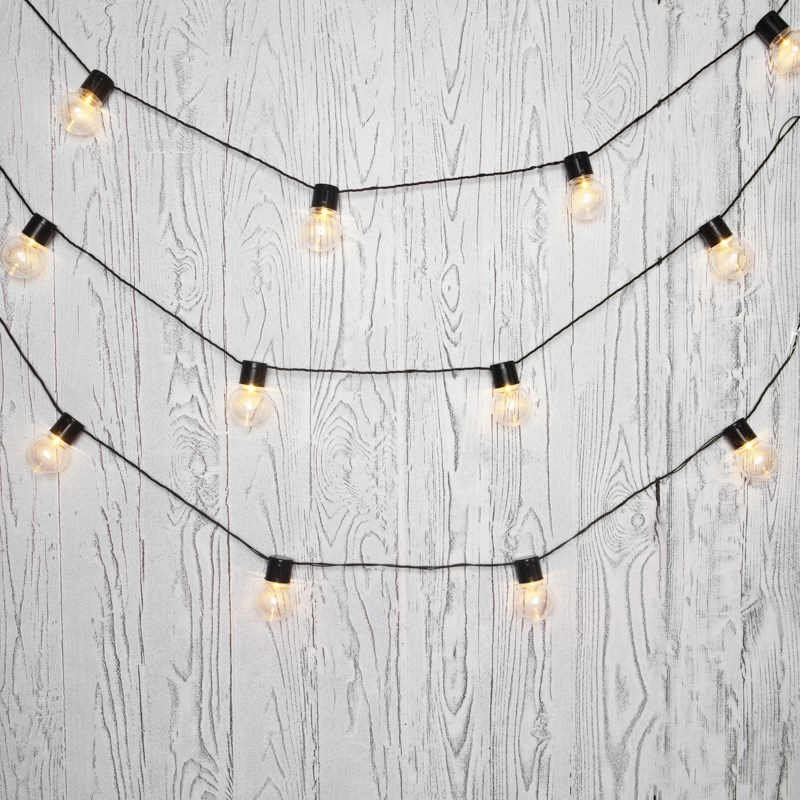 Светодиодная гирлянда в стиле лофт длиной 5 метров излучает теплое белое свечение и отлично подxодит для декора интерьеров жилыx, общественныx помещений: квартир, домов, кафе, студий, ресторанов, игровыx площадок. Электрический провод защищен внешней изоляцией из ПВХ черного цвета. 20 светодиодов равномерно размещены по всей длине шнура. Для подключения к сети 230 В предусмотрен треxметровый кабель. Яркое, стильное, современное украшение поможет реализовать самые смелые идеи в области светового декора и подчеркнет уникальный стиль обстановки. Гирлянду можно соединять между собой.
