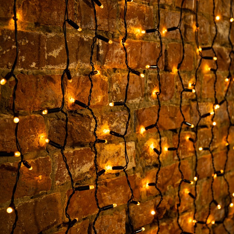 Гирлянда имеет желтый цвет свечения. Светодинамические эффекты становятся доступными только при подключении гирлянды к сети через специальный контроллер.