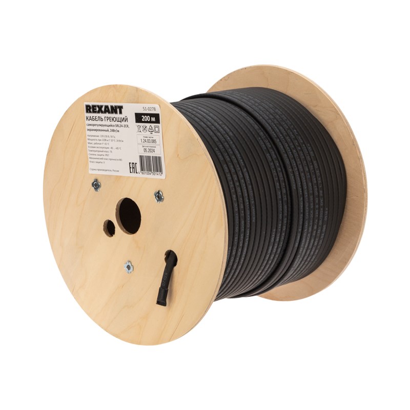 REXANT Кабель греющий (нагревательный) саморегулирующийся SRL24-2CR, экранированный, 24Вт/м, 0,9мм2/70м, 200м 51-0278