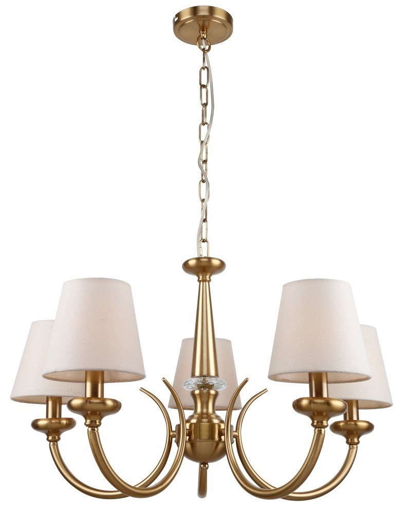 Rivoli Carissa – классическая люстра в современном воплощении. Коллекция Rivoli Carissa создана итальянскими дизайнерами. В неё входят 5-рожковые подвесные люстры (арт. 2073-305), люстры подвесные под 7 ламп (арт. 2073-307), бра (2073-401). Подвес люстр на потолок Carissa декорирован цепочкой, его длину можно отрегулировать при установке люстры. Отдавая дань традициям классического стиля, дизайнеры бренда Rivoli представили люстры Carissa в золотом цвете, с тканевыми плафонами-абажурами и хрустальным декором. Однако общий минимализм конструкции делает эти люстры потолочные удачным решением для любого современного интерьера. Данная люстра в гостиную или люстра в спальню качественно осветит до 15 м2 площади, в 5 плафонов необходимо купить лампы Е14 мощностью 40 Вт.