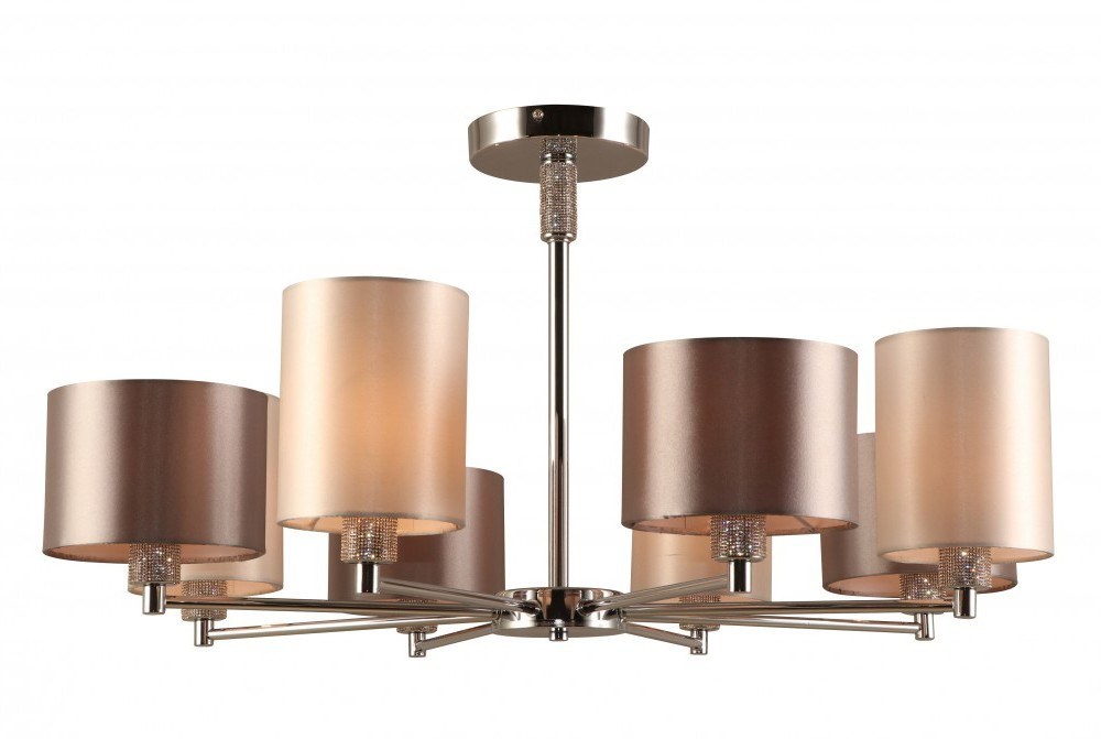 Большая люстра в спокойной классической стилистике под 8 ламп Е14 40 Вт. Люстры на штанге – актуальный тренд дизайна интерьеров. Лаконичная хромированная арматура потолочной люстры Ebony от итальянского бренда Rivoli инкрустирована декоративными кристаллами. Оригинальность люстре потолочной придают плафоны с чередованием светло-серого и серого цветов. Плафоны разной высоты выполнены в формате абажуров, перетянутых тканью. Специальная ткань устойчива к загрязнениям, высоким температурам, механическим воздействиям. В дизайнерскую коллекцию Rivoli Ebony входят: люстра под 8 ламп (арт. 2081-308), люстра под 6 ламп (арт. 2081-306), бра (арт. 2081-401), настольная лампа (арт. 7081-501).