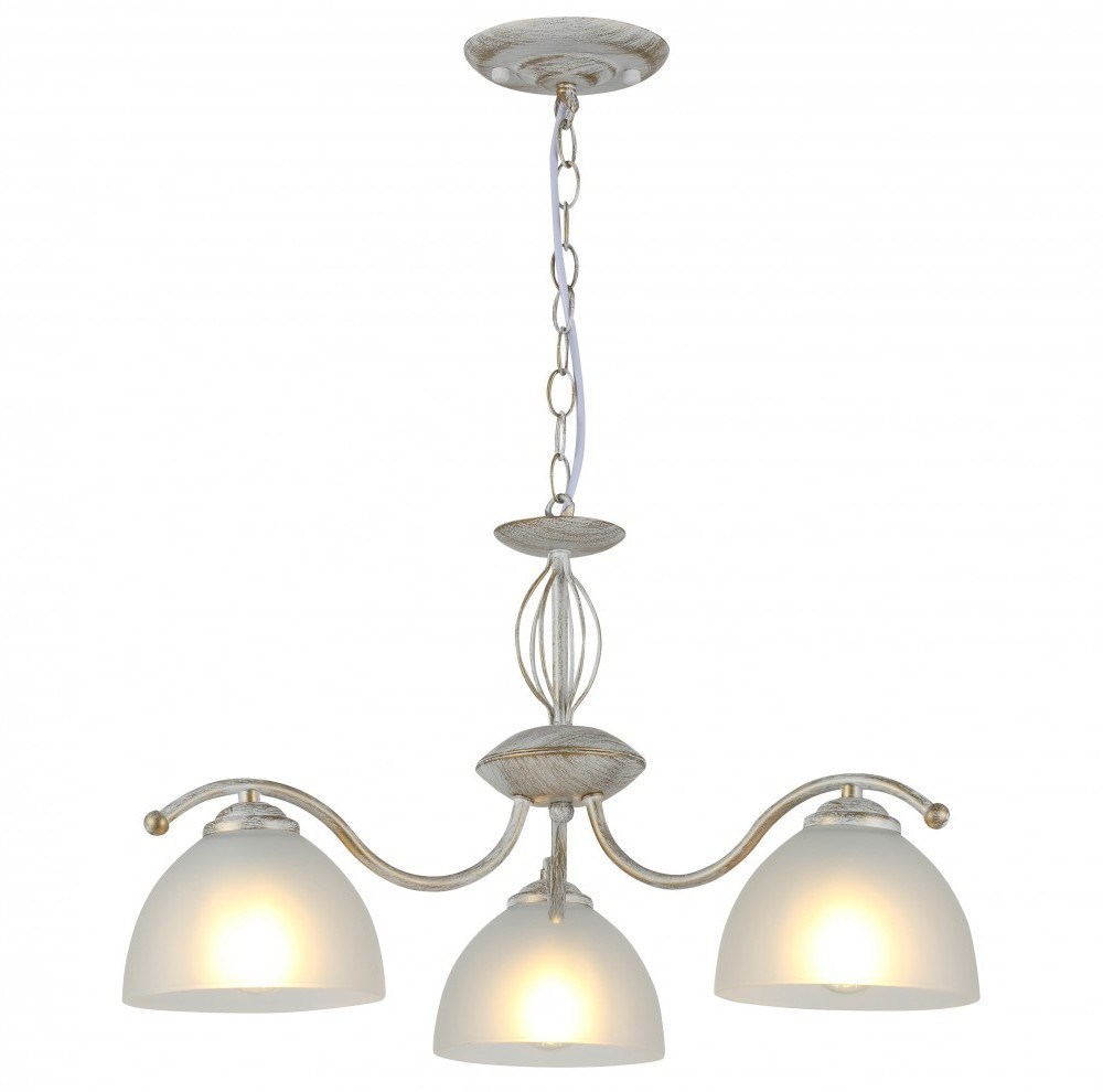 Люстры и светильники в классическом стиле Rivoli Valerie: люстра под 3 лампы – арт. 9169-303, люстра под 5 ламп – арт. 9169-305, бра – арт. 9169-401, настольный светильник – арт. 7169-501. Данная модель – люстра потолочная подвесная с 3 стеклянными матовыми плафонами белого цвета. Корпус люстры с декоративным состариванием окрашен гальваническим способом в белый цвет. Подвес люстры декорирован цепочкой, убрав звенья которой, можно легко отрегулировать высоту люстры при монтаже на потолок. Уютный свет люстры без бликов достигается применением матового стекла при изготовлении плафонов. Источники света в эту современную люстру классического стиля – Е27 40 Вт.