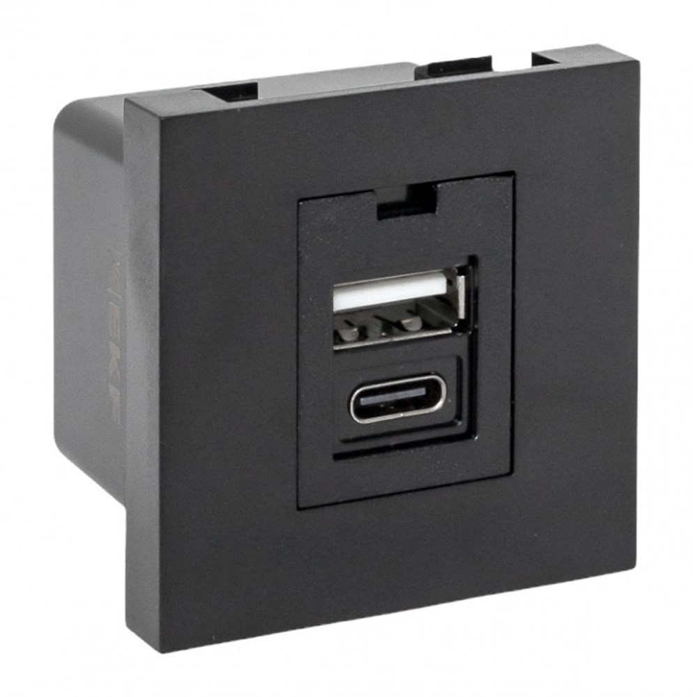 Розетка USB A+C, 2.1А, 2 гнезда, без индикатора, черная, матовая EKF E2MR2B-21USB-10-AC