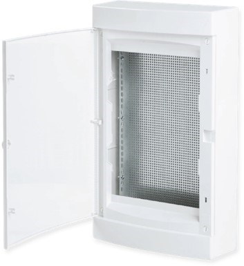 Корпуса пластиковые серии «Unix IP40» предназначены для сборки силовых распределительных и слаботочных щитов. На DIN-рейки устанавливается модульное оборудование. На монтажные платы - антенные разветвители, Wi-Fi роутеры, патч-панели и иное слаботочное оборудование. Щиты устанавливаются на поверхность стены. Ассортимент корпусов с din-рейками представлен размерами вместимостью до 72 модулей, по 12 или 18 модулей в ряду, с белой глухой или прозрачной тонированной дверью, с DIN-рейками или перфлорированными монтажными платами. Особенностью корпусов является плоское основание, упрощающее сборку и подключения внутри, лицевая панель Корпуса изготовлены из качественного глянцевого ABS-пластика, имеют минималистичный дизайн и впишутся в большинство интерьеров.