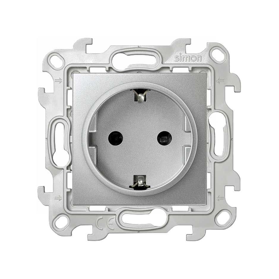 Simon 24 Алюминий Розетка с заземлением Schuko 2Р+Е 16A 250В~ 2450434-033