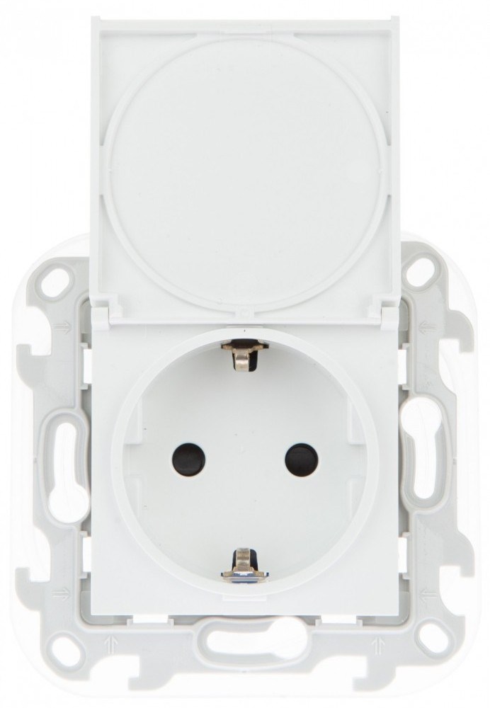 Simon 24 Белая Розетка 2К+3 Sсhuko IP44 c крышкой и защитными шторками 2450448-030