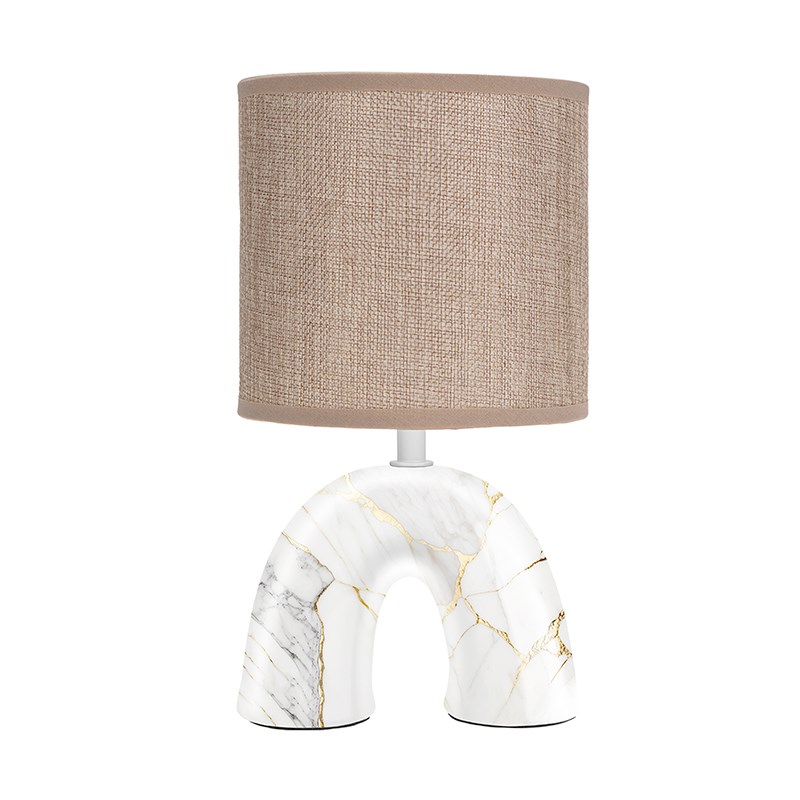 Светильник декоративный настольный Форте, основание дуга под золотой мрамор, бежевый абажур, цоколь Е27, 60Вт REXANT 603-1024