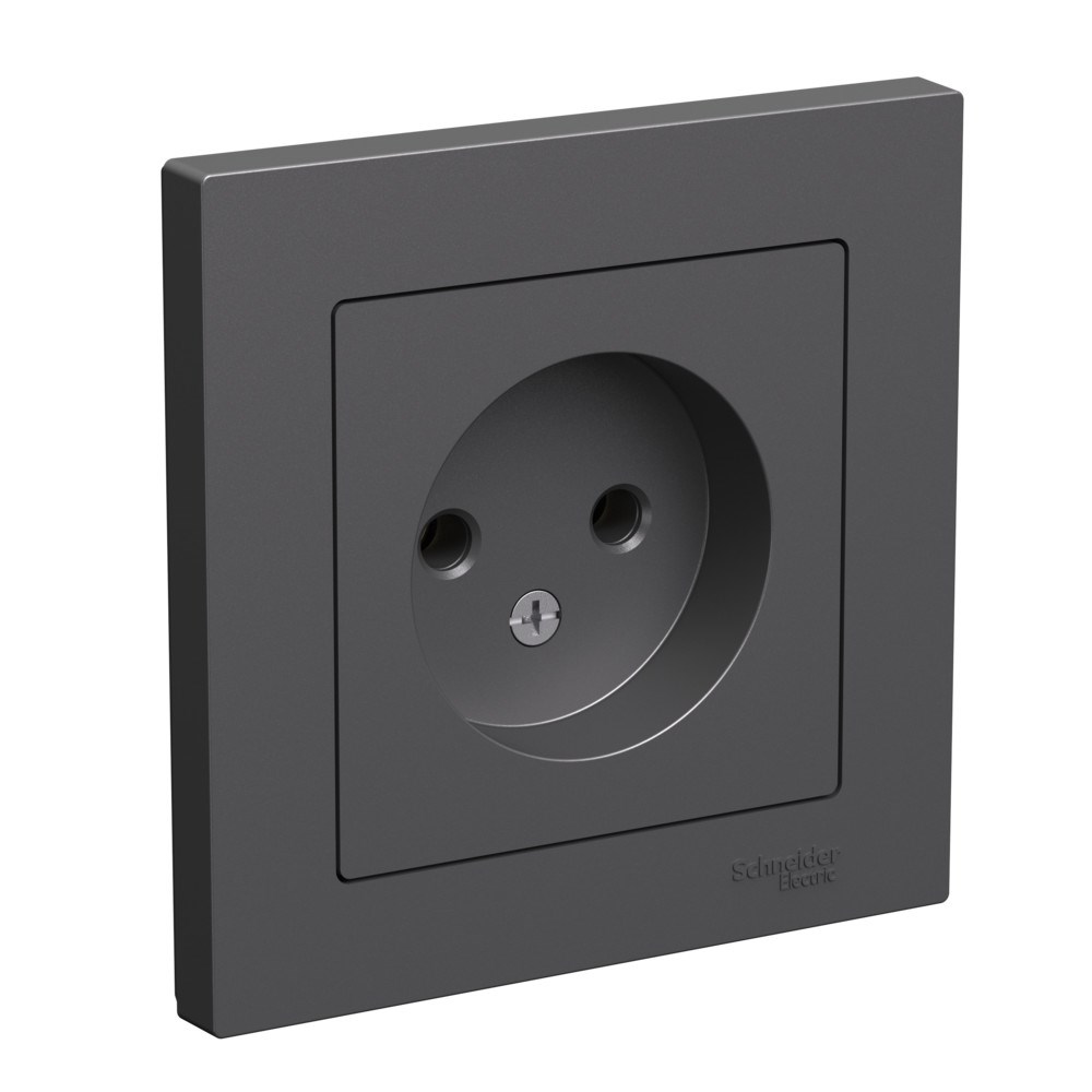 Розетка Systeme Electric (ранее Schneider Electric) серии AtlasDesign (в сборе, цвет БАЗАЛЬТ) одинарная без заземления и без шторок подходит для сетей 250 В, на ток 16 А. - Лицевые детали из качественного ABS-пластика, устойчивого к царапинам и УФ-излучению. - Изделие поставляется в комплекте с рамкой того же цвета. - Усиленные прямые монтажные лапки для лучшей фиксации механизма в монтажной коробке.
