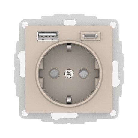 Systeme Electric AtlasDesign песочный розетка 16А c 2 USB A+C, 5В/2,4А/3,0А, 2х5В/1,5А, механизм ATN001232