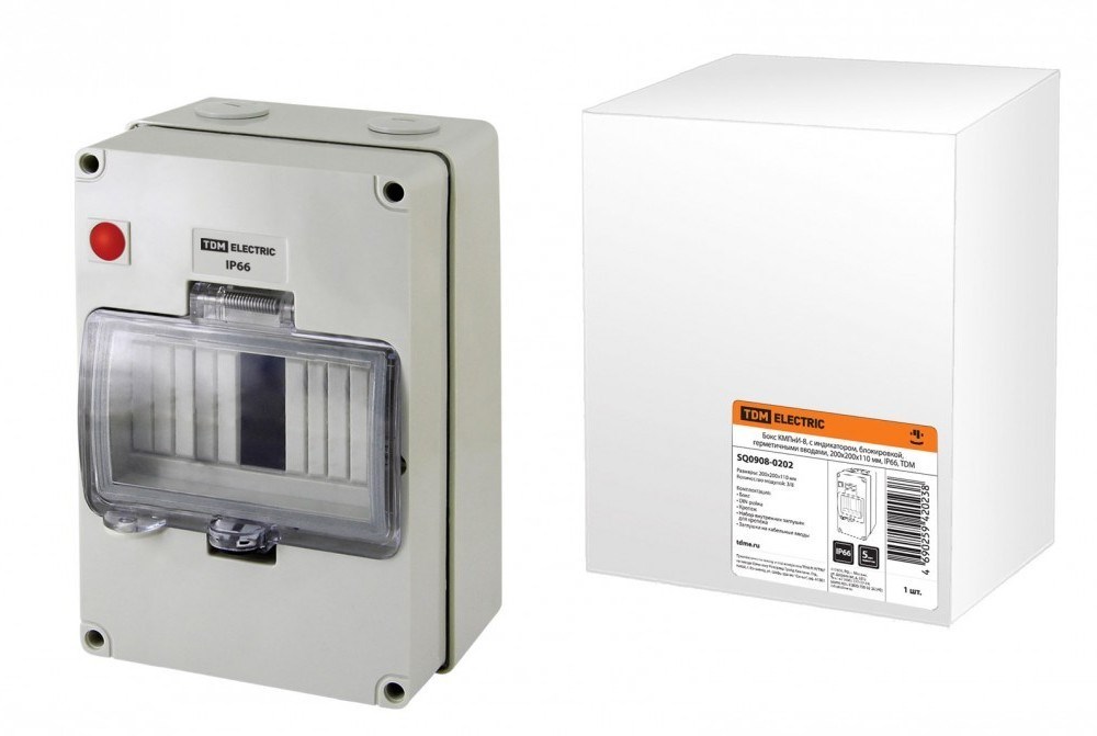 TDM Бокс КМПнИ-8, с индикатором, блокировкой, герметичными вводами, 200х200х110 мм, IP66, SQ0908-0202