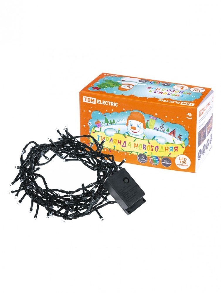 TDM Гирлянда новогодняя светодиодная, СГ 100 З, 220 В, зеленый шнур, многоцветная, 5 м, 8 режимов SQ0361-0010