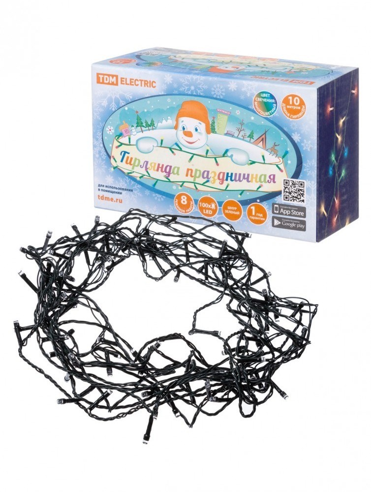 TDM Гирлянда светодиодная СГ100MЗ10, многоцвет., зеленый шнур, 10м, 8 режимов, 250 В, SQ0361-0041