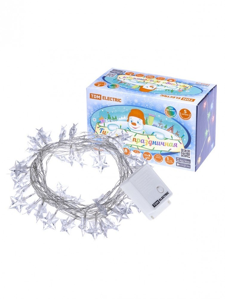 TDM Гирлянда светодиодная "Звездочки" 50LED, 5м, 8 режимов, многоцвет., прозр.шнур, 250 В, SQ0361-0049