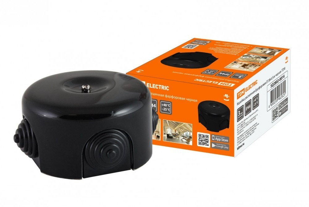 TDM Коробка распаячная фарфоровая D7,8х4,5см черная SQ2802-0014