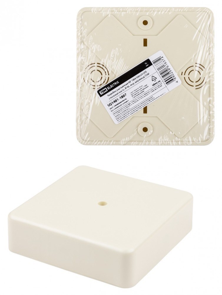 TDM Коробка распаячная КР 100х100х29 ОП, сл. кость, IP40, инд. штрихкод SQ1401-1807