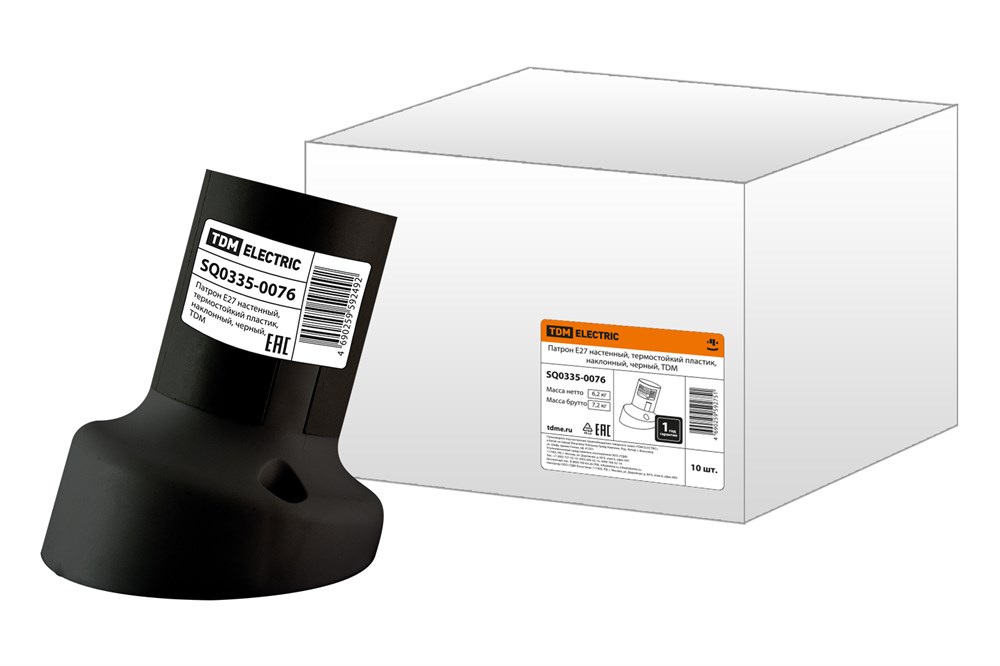 TDM Патрон Е27 настенный, термостойкий пластик, наклонный, черный SQ0335-0076