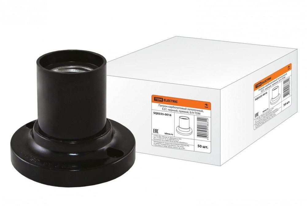 TDM Патрон карболитовый потолочный, Е27, черный, прямой, Б/Н SQ0335-0016