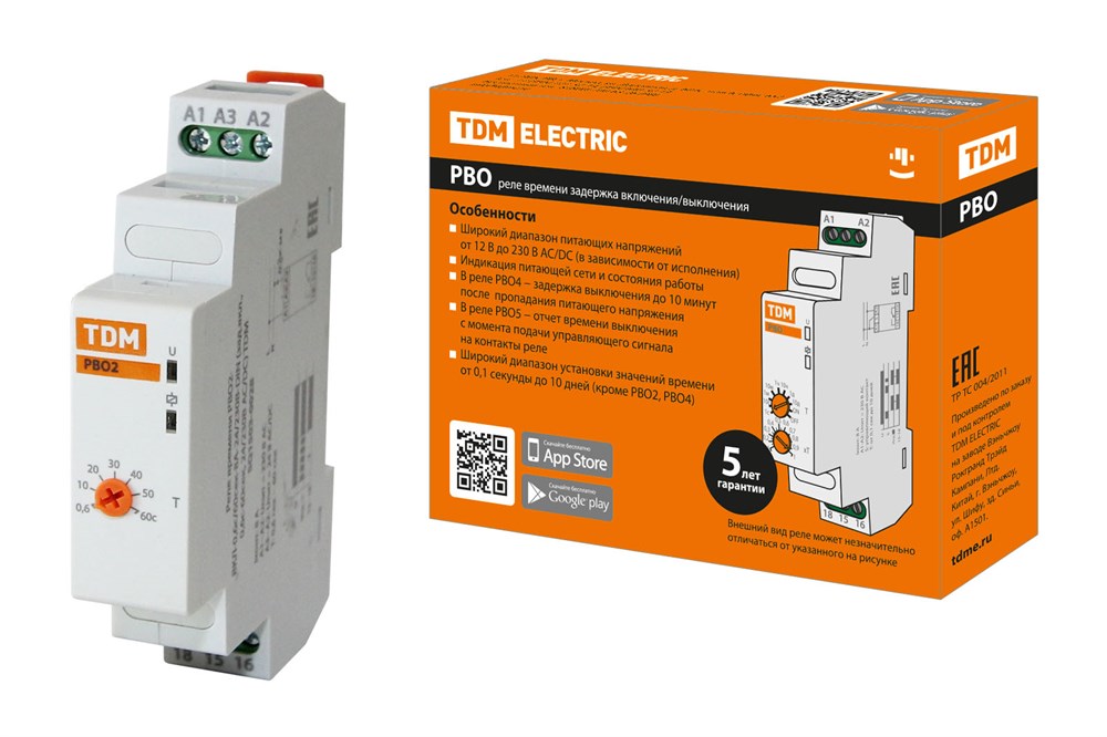 TDM Реле времени РВО2-ВКЛ-0,6с/60сек-8А-24/230В-DIN (зад.вкл., 0,6с-60сек, 24/230В AC/DC) SQ1503-0028