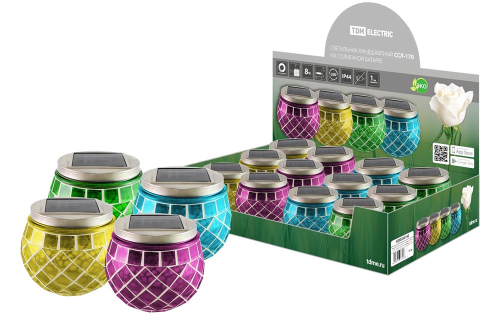 TDM Светильник ландшафтный ССЛ-170 на солн.батарее, 9*9*10,стекло,зеленый,синий,желтый,фиолетовый,ДБ SQ0330-0193