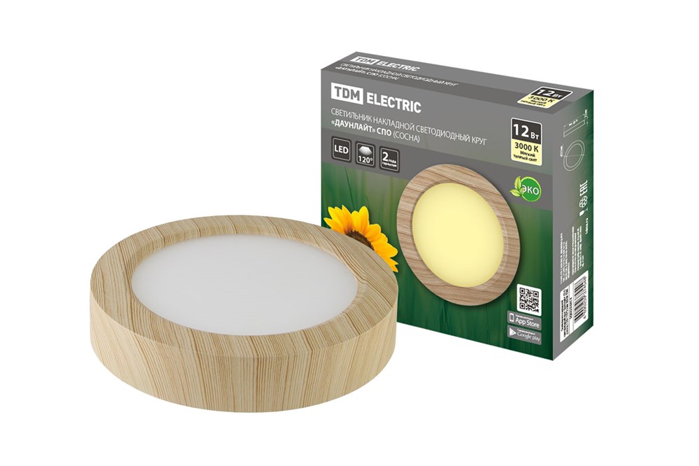 TDM Светильник накладной светодиодный круг "Даунлайт" СПО (сосна) 12 Вт 170*32 мм 3000К SQ0329-0414