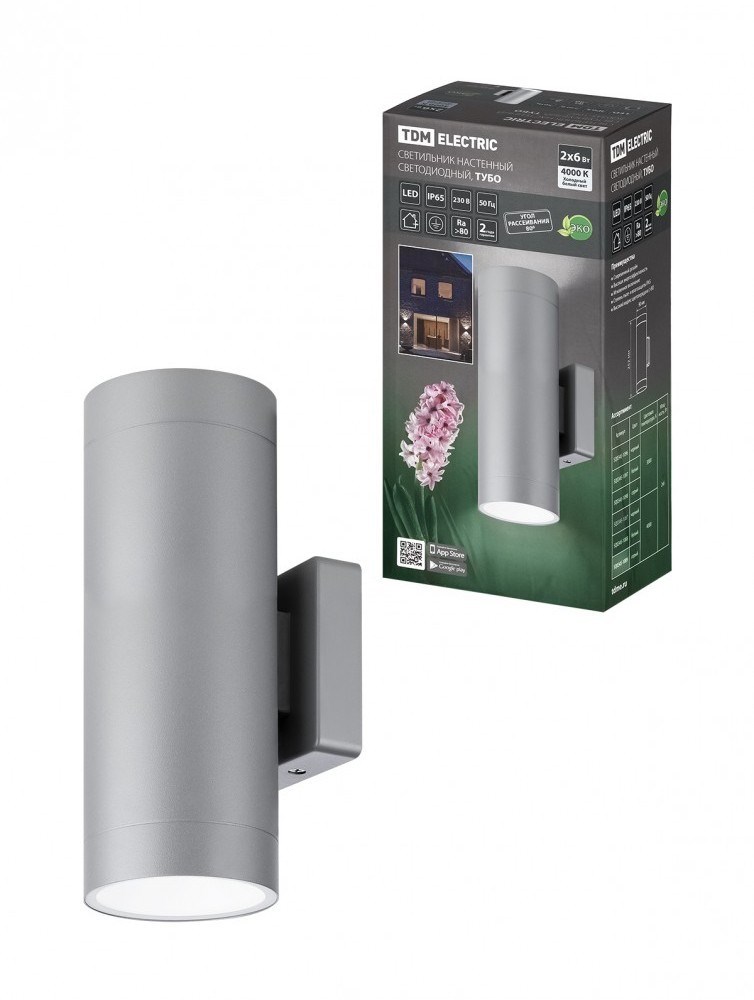 TDM Светильник настенный LED, Тубо, 2х6 Вт, 4000 К, H252 мм, алюм./сер., вверх/вниз, IP65 SQ0345-1089