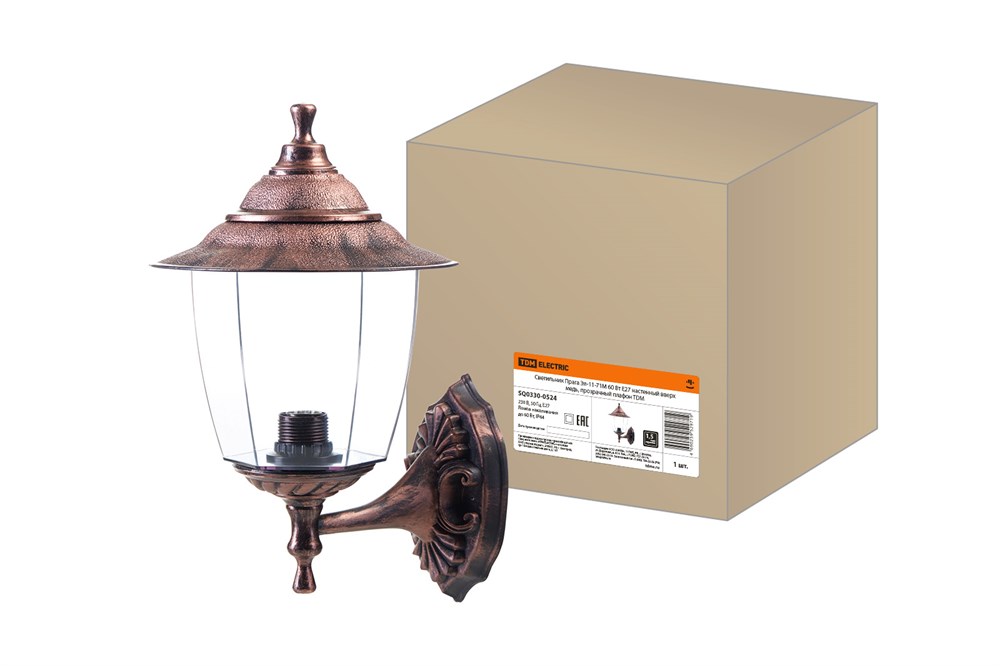 TDM Светильник Прага Эл-11-71М 60 Вт Е27 настенный вверх медь, прозрачный плафон SQ0330-0524