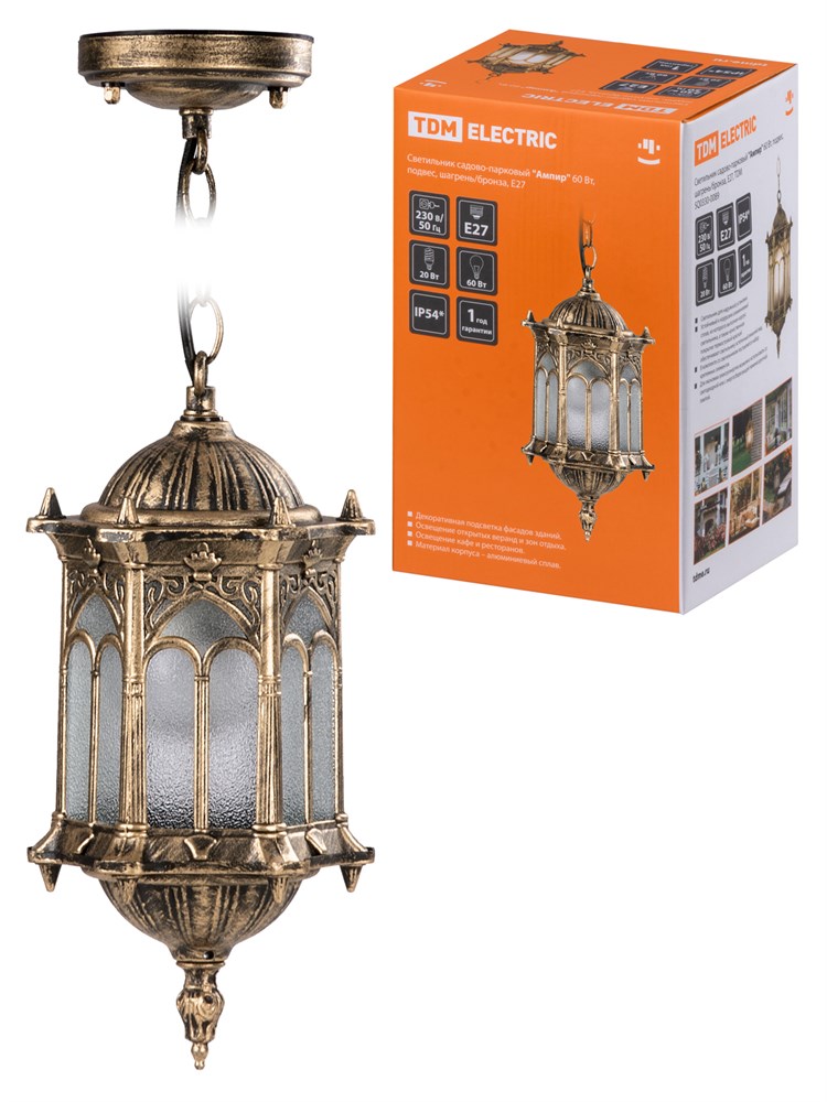 TDM Светильник садово-парковый "Ампир" 60 Вт, подвес шагрень/бронза Е27 SQ0330-0089