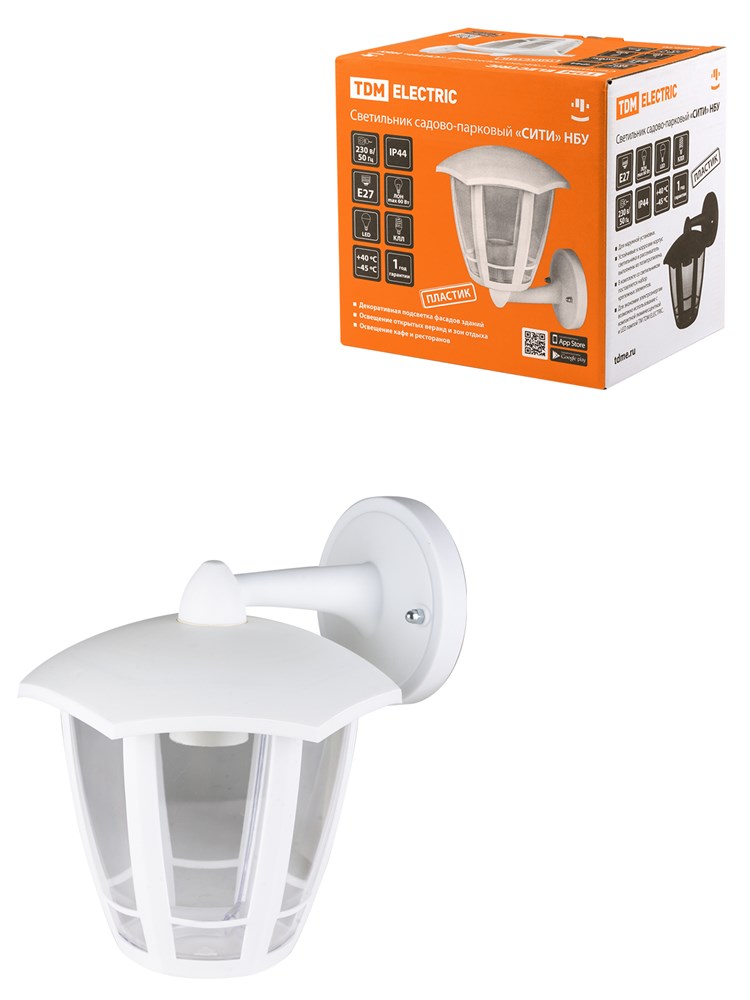 Назначение:br/Cветильники садово-парковые серии Сити предназначены для декоративной подсветки: фасадов зданий, приусадебных участков, террас, зон отдыха, парков, коттеджей.br/Преимущества:br/Прочный корпус из полипропилена не подвержен коррозии и выгоранию.Рассеиватель из поликарбоната отличается атмосферостойкостью, хорошими физико-механическими свойствами и высокой светопроницаемостью.Высокая степень защиты светильника от пыли и влаги IP44.Светильники представлены в трех корпусах: НБУ настенный (направление плафона вверх и вниз), НТУ цокольный венчающий (напольные и напольные на стойке), НСУ подвесной.Каждый светильник упакован в индивидуальную коробку с необходимой информацией об изделии и штрихкод EAN-13.br/Конструкция:br/Корпус изготовлен из полипропилена.Рассеиватель из поликарбоната.Патрон пластиковый Е27.br/